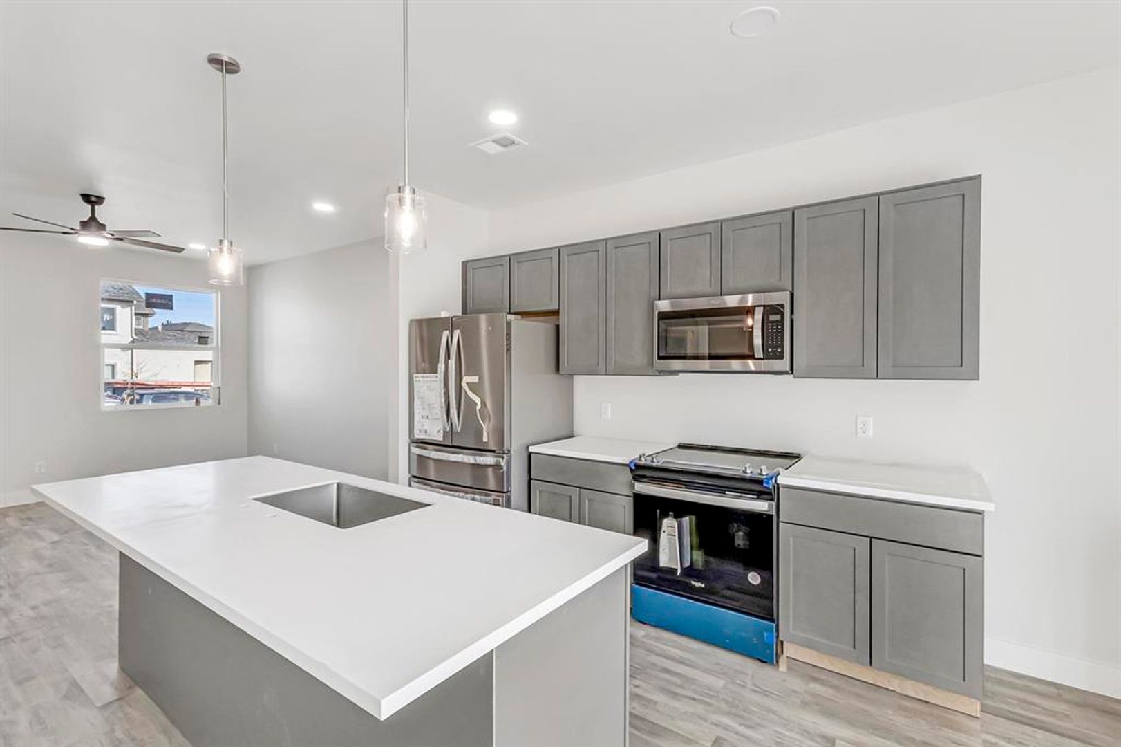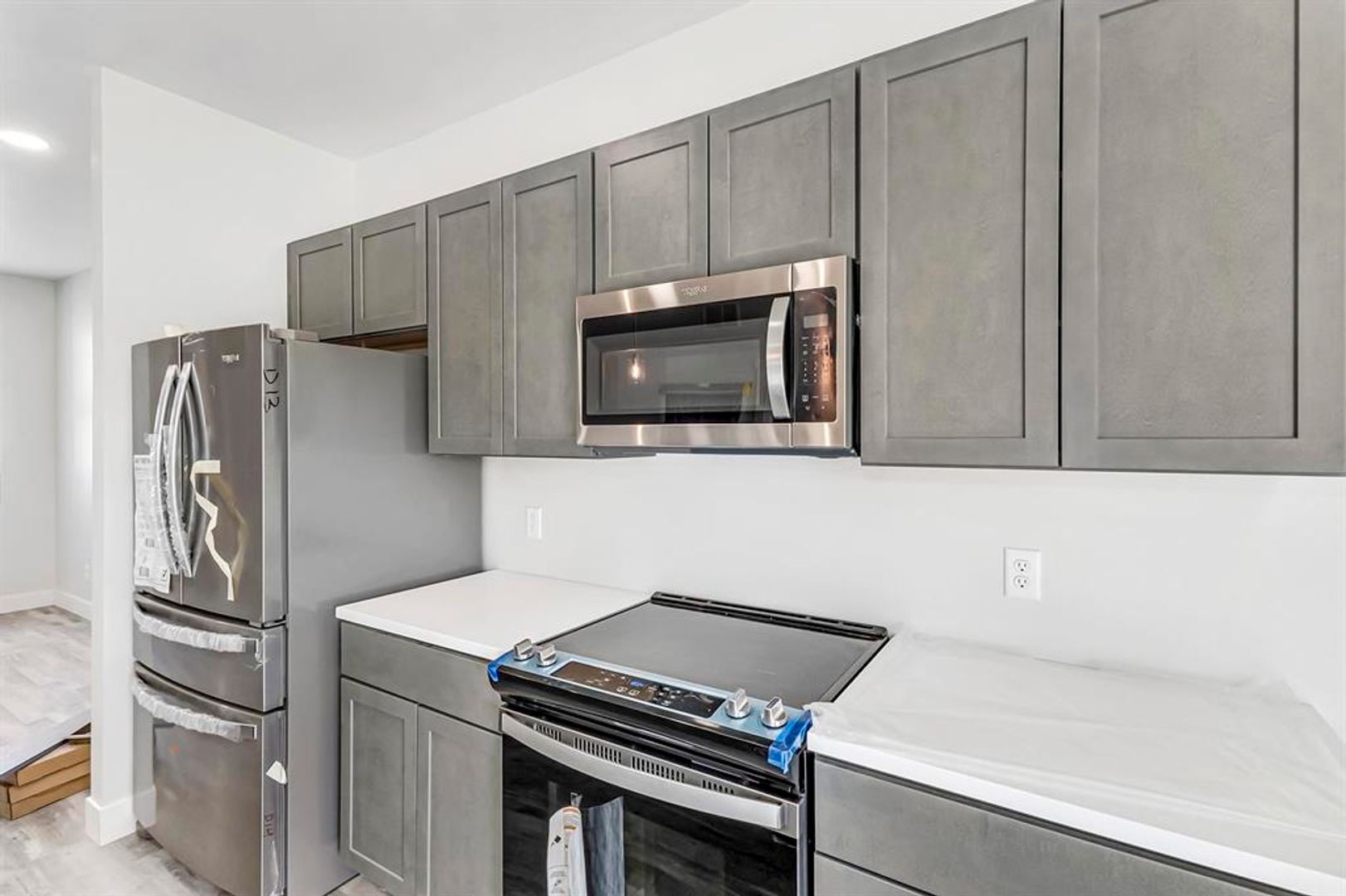This beautifully designed unit features soft gray tones throughout, complemented by matching cabinetry, countertops, vinyl flooring, tile, and plush carpeting. This home boasts a well-appointed kitchen with all appliances included, spacious primary suites with large walk-in closets, and luxurious bathrooms with expansive walk-in showers.